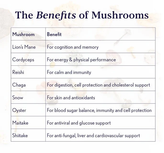 Reishi - Often called the “mushroom of immortality”, Reishi is known for its immune-boosting and stress-reducing properties. It supports overall wellness and helps the body adapt to stress.