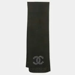 Chanel - Black CC Embroidered Cashmere Knit Scarf - £694