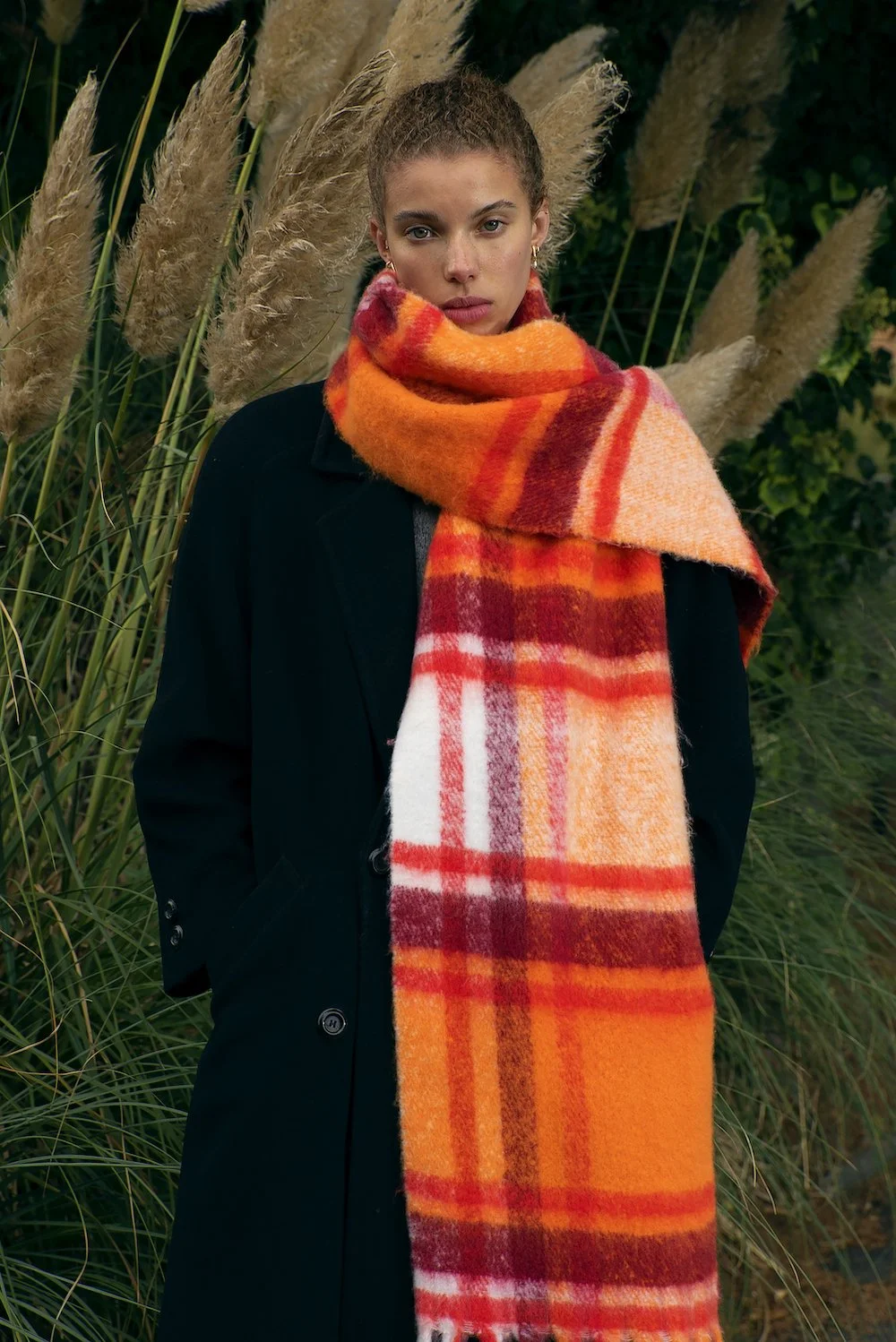 REplaid Oversized Recycled Bottle Scarf - Orange & Red