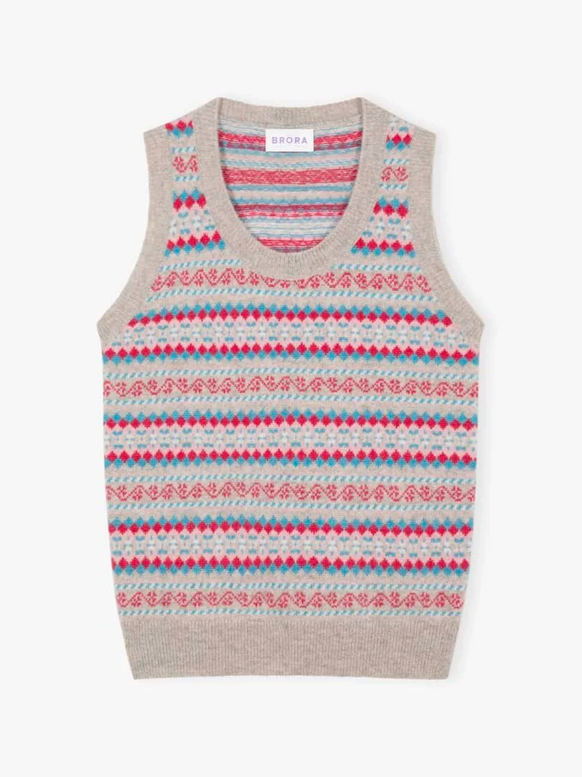 Brora - Cashmere Fair Isle Tank in Ash - £345.00