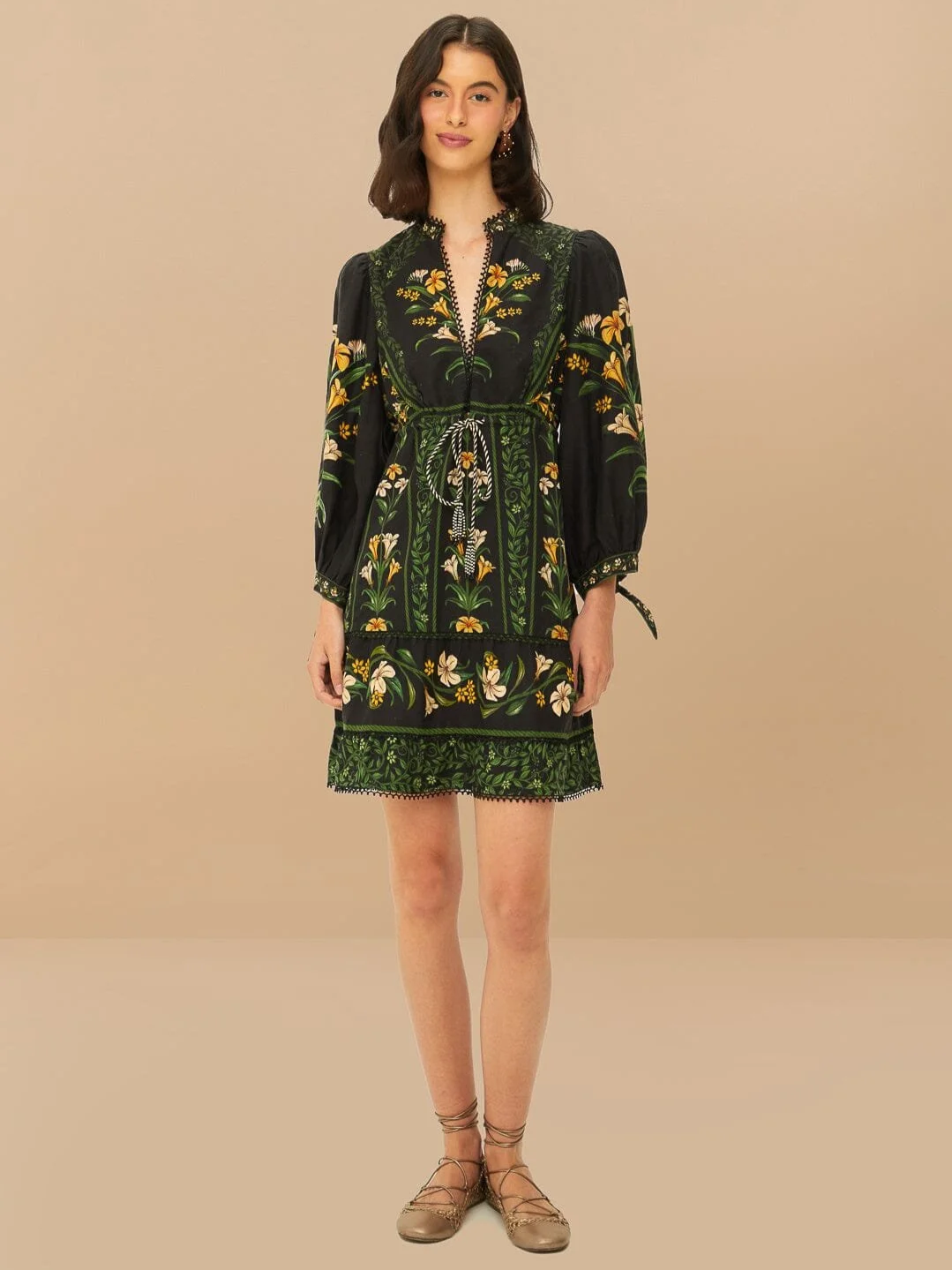 Farm Rio - Black Flowers Arch Mini Dress - £260.00