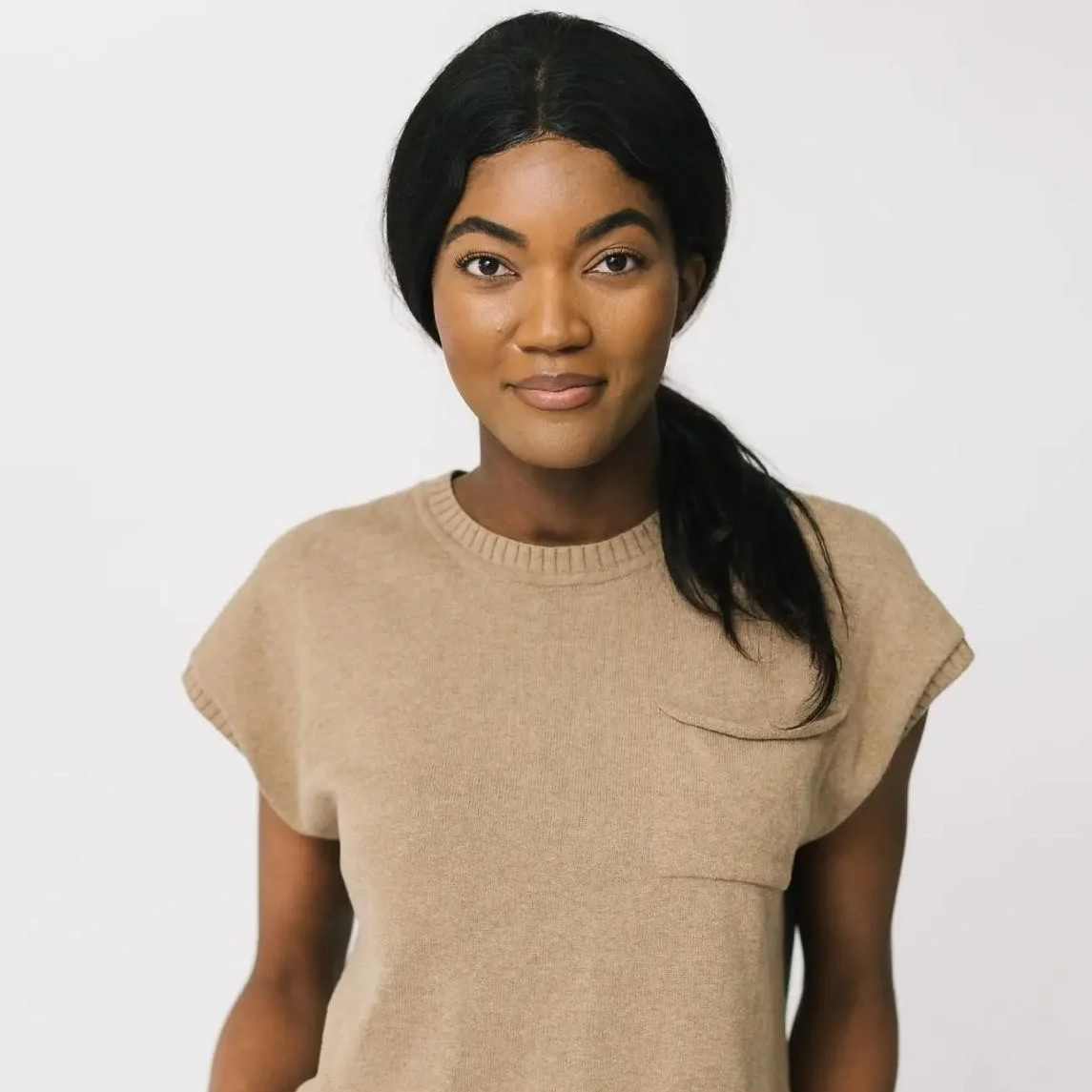 All Day Sleeveless Sweater in Camel by époque évolution
