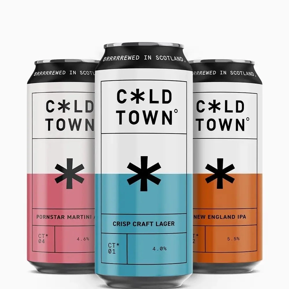 Cold Town Beer is a Scottish craft brewery based in Edinburgh, named after the city's historic Calton Hill, originally called "Caltoun" or "Cold Town." Established to honour Edinburgh's rich brewing heritage, Cold Town Beer handcrafts a diverse range of beers in small batches, ensuring quality and innovation. Their offerings include lagers, IPAs, and unique brews from their experimental Lab Range, such as the Vienna Lager and Citrus Milkshake Pale Ale. In 2024, the brewery underwent a brand refresh, introducing bold new designs and increasing can sizes from 330ml to 440ml to enhance consumer experience. Cold Town Beer's products are available on draught across Scotland and in cans through their online store.