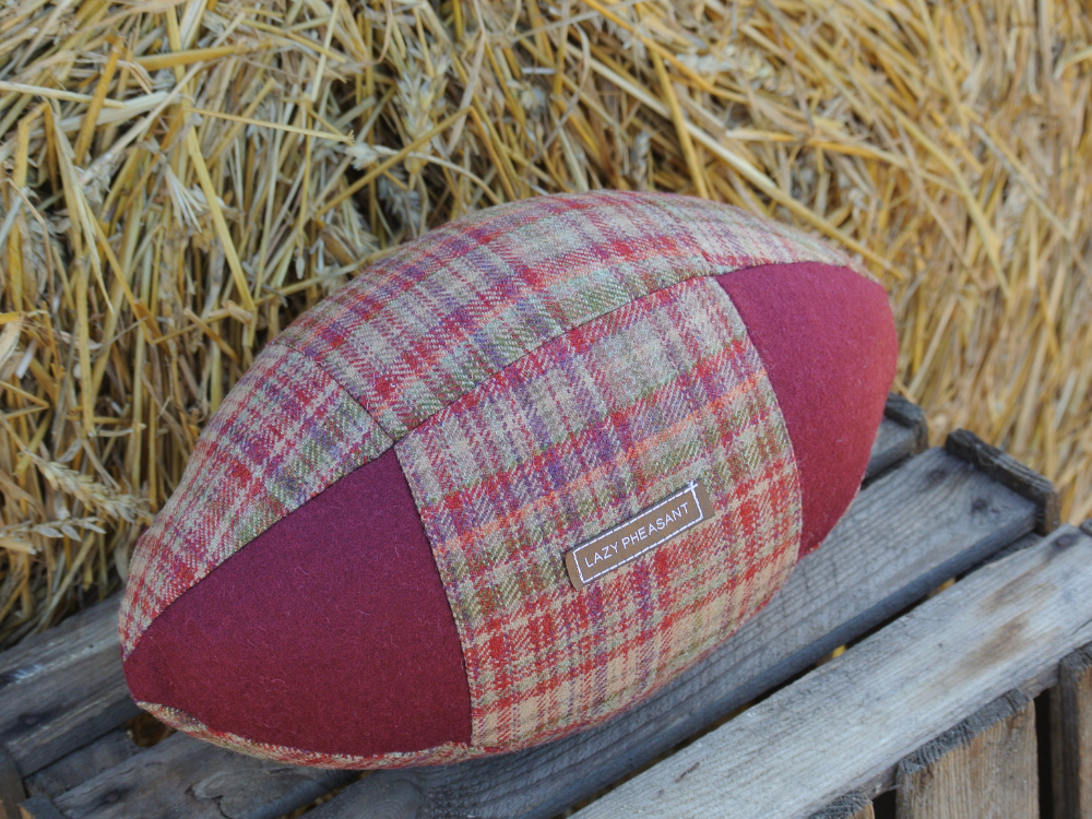 We have a selection of cushions, lampshades, tweed caps, scarves, wool throws and purses. Our own designs are manufactured in Scotland, and we also source luxurious products from across the UK that are sold on our website – lazypheasant.com. Our best-selling product is the rugby ball cushion, our exclusive design, makes it a truly unique and quirky product.