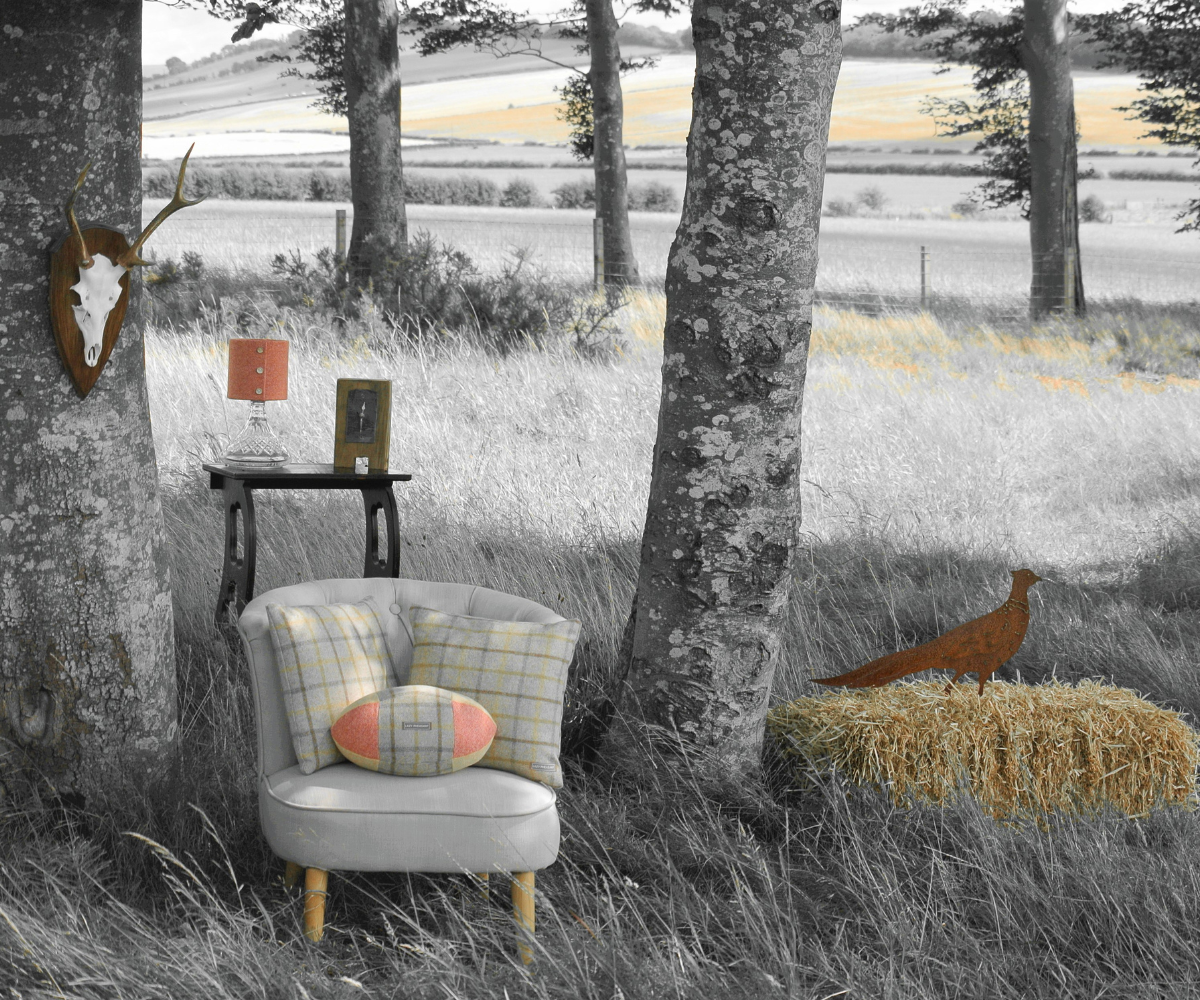 I worked within mining and environmental consultancy for over 12 years, then in 2013 when I was on my honeymoon in Paris, I started to think more of my creative interests and ideas – art, photography, the countryside and what I could do with this. I had recently undertaken an evening class in soft furnishings which allowed me to create my own designs using colourful tweeds. This was the inspiration to start designing quirky home furnishings that I could develop into a business, and it really got me fired up!