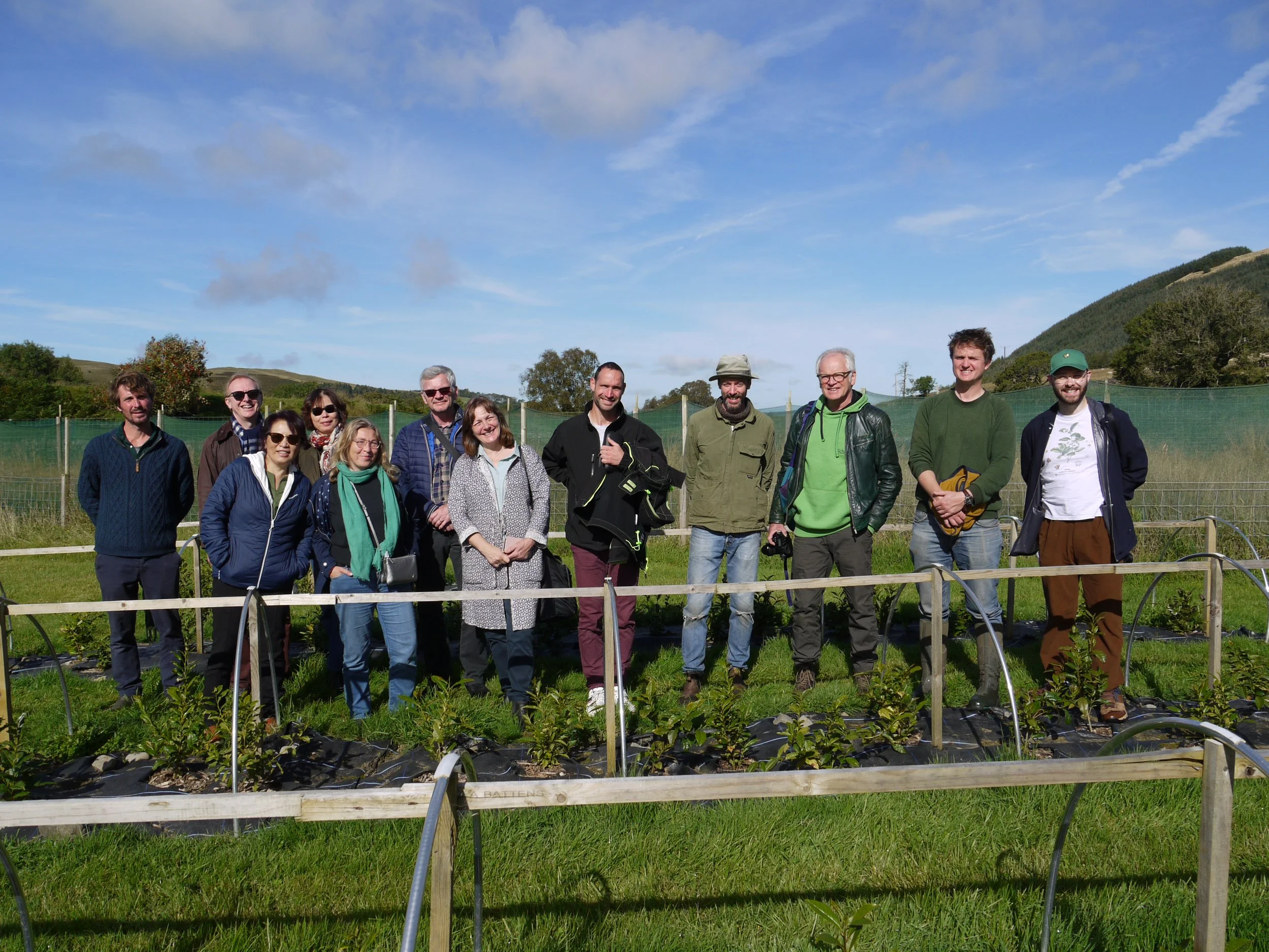 After Wales, Scotland with the visit of three tea gardens grouped under the dynamic of Tea Scotland. The first visit was in East Ayrshire where the group spent a magnificent morning including a visit of the site and the nursery, a technical demonstration of shading and some passionate exchanges between tea producers. The morning ended up with a meal, basking in the sunshine and a good cup of tea, of course. This is where I joined the association for a few hours of immersion with tea farmers in the magnificent East Ayrshire countryside near the Afton river.